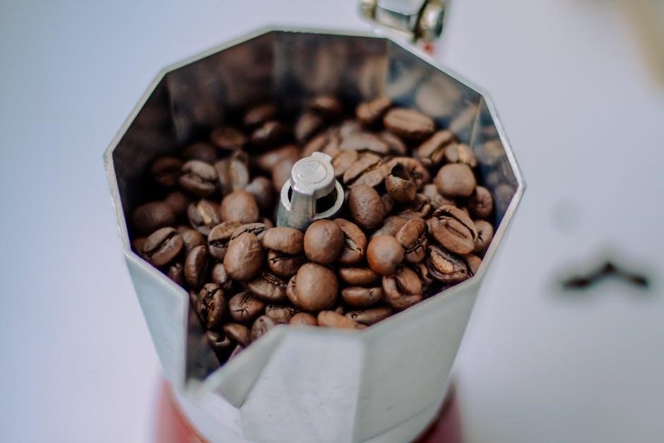 Freshly ground beans are crucial for optimal flavor․ The manual may specify a recommended coffee-to-water ratio․ Avoid pre-ground coffee, as it loses its aroma and flavor quickly․ Experiment with grind settings to achieve your desired coffee strength, always referencing the manual’s guidance for best results․